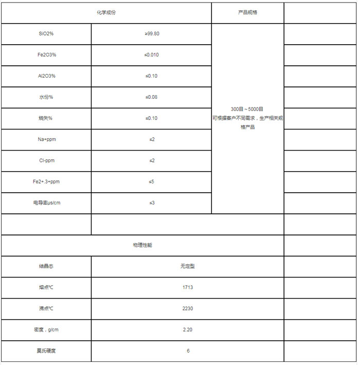 產品信息:熔融石英粉,電熔石英粉(Fused silica)系連云港東海富彩礦物石英材料制品公司選用東?h本地優質的天然石英,經高溫熔煉熔化熔融后,冷卻產生的非晶態二氧化硅,經過分揀破碎除鐵等工藝,熔煉透明石英塊料作為主要原料,再經我公司標準生產工藝加工而成的微粉。